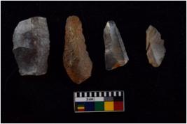 | Description / विवरण | There are n 4 Flake tool; There are multidirectional irregular scar pattern on them. few have blunt edges, Some of them are tapering at one end. |