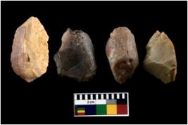 | Description / विवरण | There are n 4 utilized flakes. There are multi directional irregular scar pattern on both dorsal and ventral face of the flakes. Some of them are tapering and few are sharp edges at one end. |