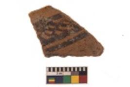 | Description / विवरण | Specimen of black on red ware with black decorative Lattice design geometric painting. |