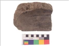 | Description / विवरण | Fragment of squarish incense burner with aeched edges and pinched corner; it is a well fired. |