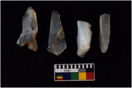 | Description / विवरण | There are n 4 flakes tool; there are multidirectional irregular scar pattern on them; made of short flakes and all four have tapering edges. |