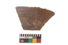 | Description / विवरण | Specimen of black on red ware with black decorative Wavy lines geometric painting. |