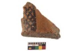| Description / विवरण | Specimen of black on red ware with black decorative Lattice design geometric painting. |