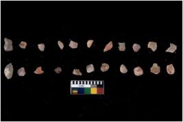 | Description / विवरण | Specimen of flakes Chips with prominent flaking marks. It made up of a short flakes with sides trimmed. |