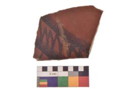 | Description / विवरण | Specimen of a Potsherd with black decorative geometric painting on it.It is set of two zigzag bands. |