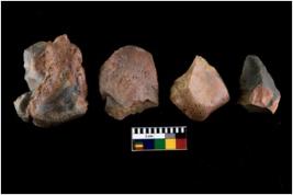 | Description / विवरण | There are n 4 utilized flakes. There are multi directional irregular scar pattern on both dorsal and ventral face of the flakes. some of them are sharp at one end and few are tapering edges. |