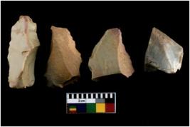 | Description / विवरण | There are n 4 utilized flakes. There are multi directional irregular scar pattern on both dorsal and ventral face of the flakes. some of them are sharp at one end and few are tapering edges. |
