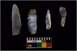 | Description / विवरण | There are n 4 Flake tool; There are multidirectional irregular scar pattern on them. few have blunt edges, Some of them are tapering at one end. |