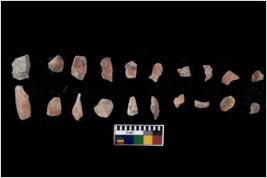 | Description / विवरण | Specimen of flakes Chips with prominent flaking marks. It made up of a short flakes with sides trimmed. |