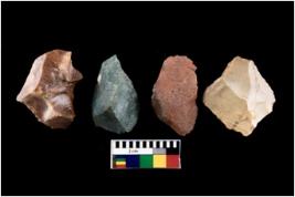 | Description / विवरण | There are n 4 utilized flakes. There are multi directional irregular scar pattern on both dorsal and ventral face of the flakes. some of them are blunted at one end and few are tapering edges. |