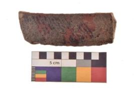 | Description / विवरण | Specimen of Potsherd black on red painted pottery. It is fine fabric in sharp contrast with painted design are executed in black pigment. |