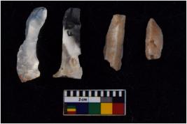 | Description / विवरण | Specimen of flakes tool with prominent flaking marks. It made up of a short flakes with sides trimmed. |