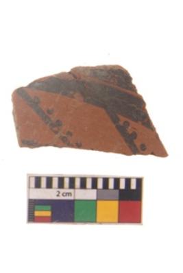 | Description / विवरण | Specimen of black on red ware with black decorative Lines and dots geometric painting. |