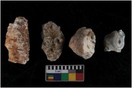 | Description / विवरण | There are n 4 of utilized worked cores and have multidirectional irregular dominant scar pattern on both dorsal and ventral sides. Two have a flat base. |