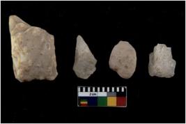 | Description / विवरण | There are n 4 flakes tool; there are large flakes with sides trimmed, Marks of secondary flaking are present on the both the faces.The dorsal is relatively flat. |