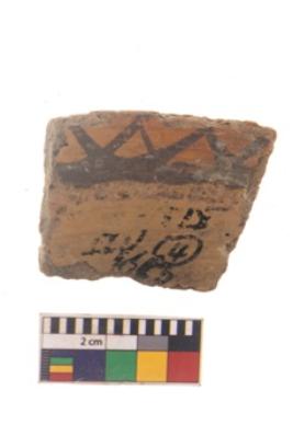 | Description / विवरण | Specimen of black on red ware with black decorative Zigzag lines geometric painting. |