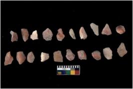 | Description / विवरण | Specimen of flakes Chips with prominent flaking marks. It made up of a short flakes with sides trimmed. |
