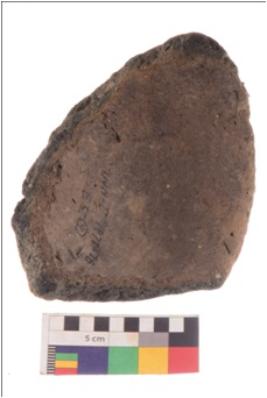 | Description / विवरण | Fragment of squarish incense burner with aeched edges and pinched corner; it is a well fired. |