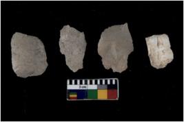 | Description / विवरण | There are n 4 flakes tool; there are multidirectional irregular scar pattern on them; made of short flakes and all four have tapering edges. |