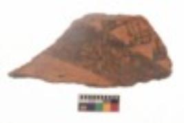 | Description / विवरण | Specimen of black on red ware with black decorative Curved lines geometric painting. |