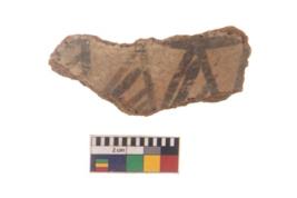 | Description / विवरण | Specimen of black on red ware with black decorative Elonagted vertical triangles with strokes geometric painting. |