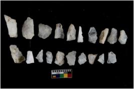 | Description / विवरण | There are n 20 flakes; there are multidirectional irregular scar pattern on them; made of short flakes, few are blades, one has pen pointed edge and few have tapering edges. |