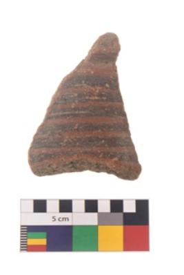 | Description / विवरण | Specimen of black on red ware with black decorative Parallel horizontal lines geometric painting. |