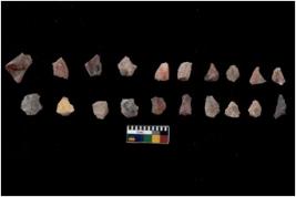 | Description / विवरण | Specimen of flakes Chips with prominent flaking marks. It made up of a short flakes with sides trimmed. |