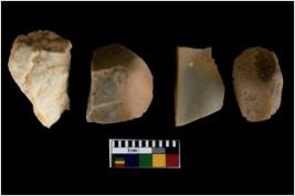 | Description / विवरण | There are n 4 utilized flakes. There are multi directional irregular scar pattern on both dorsal and ventral face of the flakes. some of them are tapering at one end and one has blunted edge. |