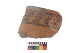 | Description / विवरण | Specimen of black on red ware with black decorative Leaf like design nature painting. |