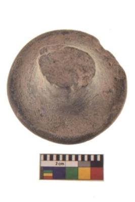 | Description / विवरण | Specimen of a terracotta dabber. It is made of medium to coarse clay and it is grayish in color. It is devoid from any kind of wash. It is having broken handle at the top to provide a firm grip. It is having a flat base to retain the convexity of the finished vessel. |