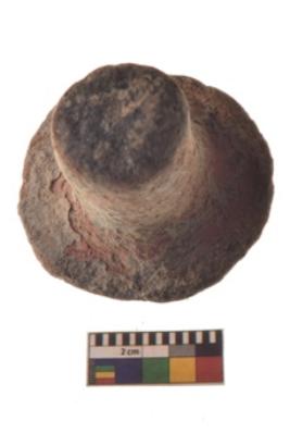 | Description / विवरण | specimen of a terracotta dabber. It is made of medium to coarse clay and it is reddish in color. It is devoid from any kind of wash. It is having well formed handle at the top to provide a firm grip. It is having a flat base to retain the convexity of the finished vessel. |