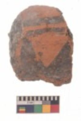 | Description / विवरण | Specimen of black on red ware with black decorative Triangles and curved lines geometric painting. |