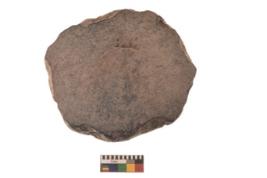 | Description / विवरण | Specimen of ground disc hopscotch made from a red ware. It has jagged edges with sign of chipping. It is rounded in shape. |