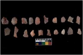| Description / विवरण | Specimen of flakes Chips with prominent flaking marks. It made up of a short flakes with sides trimmed. |