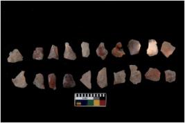 | Description / विवरण | Specimen of flakes Chips with prominent flaking marks. It made up of a short flakes with sides trimmed. |