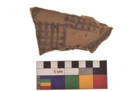 | Description / विवरण | Specimen of potter tool with black decorative geometric Net Pattern painting |