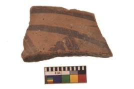 | Description / विवरण | Specimen of Potsherd black on red painted pottery. It is fine fabric in sharp contrast with painted design are executed in black pigment. |