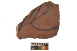 | Description / विवरण | Specimen of potsherd with black decorative Nature motif painting |