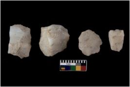 | Description / विवरण | There are n 4 flakes tool; there are multidirectional irregular scar pattern on them; made of short flakes and all four have tapering edges. |