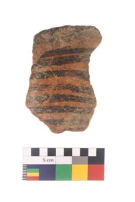 | Description / विवरण | Specimen of black on red ware with black decorative Parallel lines geometric painting. |