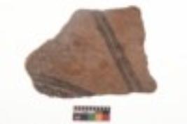 | Description / विवरण | Specimen of black on red ware with black decorative Lattice and curved lines geometric painting. |