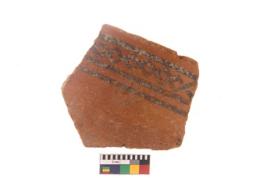 | Description / विवरण | Specimen of black on red ware with black decorative Dimond lattice design geometric painting. |