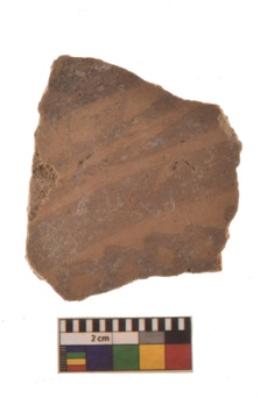 | Description / विवरण | Specimen of Potsherd black on red painted pottery. It is fine fabric in sharp contrast with painted design are executed in black pigment. |