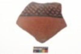 | Description / विवरण | Specimen of black on red ware with black decorative Lattice geometric painting. |