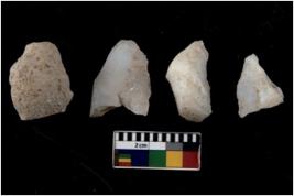 | Description / विवरण | There are n 4 flakes tool; there are multidirectional irregular scar pattern on them; made of short flakes and all four have tapering edges. |