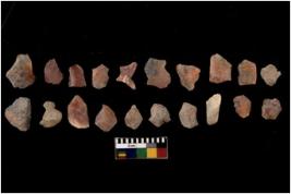 | Description / विवरण | Specimen of flakes Chips with prominent flaking marks. It made up of a short flakes with sides trimmed. |