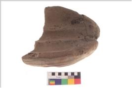| Description / विवरण | Fragment of oval incense burner with edges and pinched corner; it is a well fired. |