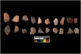 | Description / विवरण | Specimen of flakes Chips with prominent flaking marks. It made up of a short flakes with sides trimmed. |