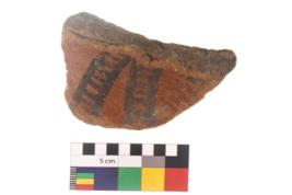 | Description / विवरण | Specimen of black on red ware with black decorative Lattice leaf geometric painting. |